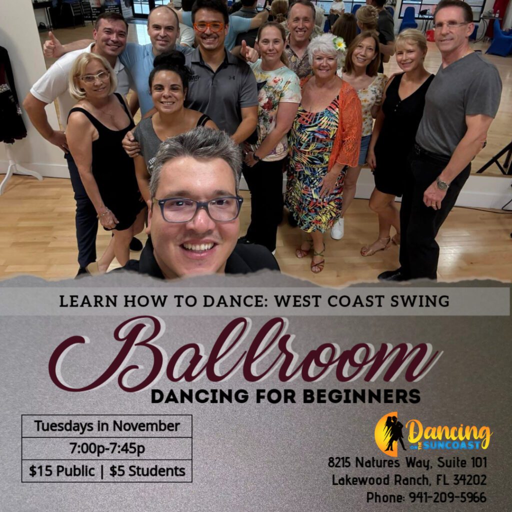 Dancing on the Suncoast has been teaching ballroom, Latin, and swing dance in the Lakewood Ranch, Sarasota, and Bradenton areas since 2001.